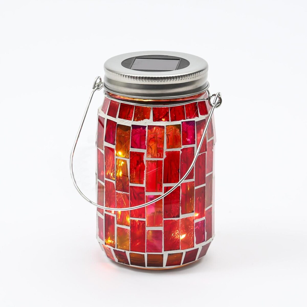 MARELIDA LED Solar Glas Einmachglas mit Mosaik Tischleuchte mit Henkel Lichtsensor rot