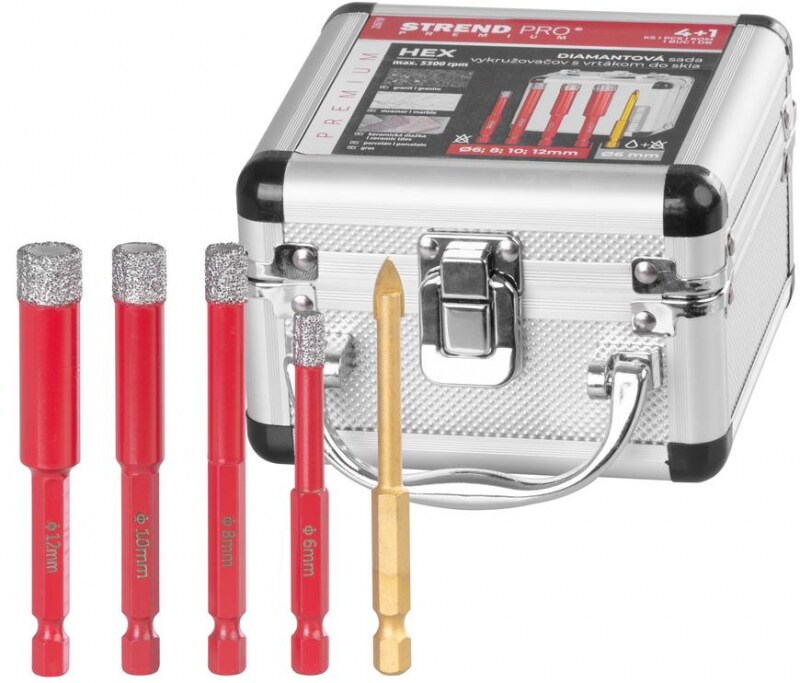 Satz Lochsägen Strend Pro Premium, 6-8-10-12 mm, HEX, 6 mm Glasbohrer Diamant, Dosenbohrer, professional