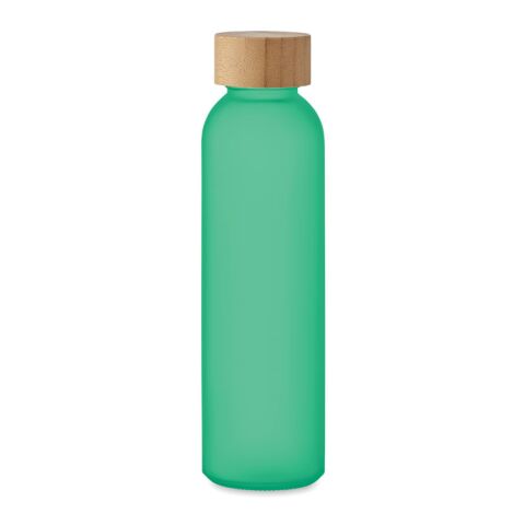 Werbeartikel 500ml Glasflasche gefrostet mit Bambusdeckel auslaufsicher & edel matt nachhaltig – transparent grün – mit Logo bedruckt