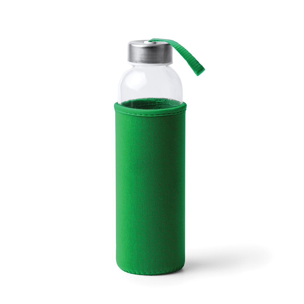 Werbeartikel Glasflasche (500ml) mit einem Neoprenhülle Nika - limettengrün gg. Aufpreis mit Logo bedrucken