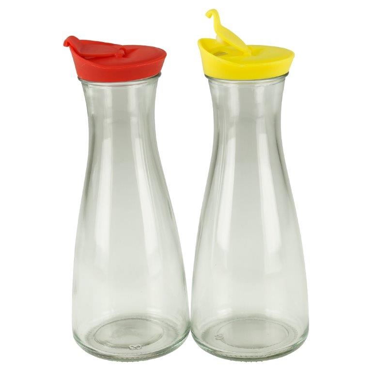 GVK ECO Glaskaraffe mit Deckel 1 Liter 2 Stück Rot/Gelb