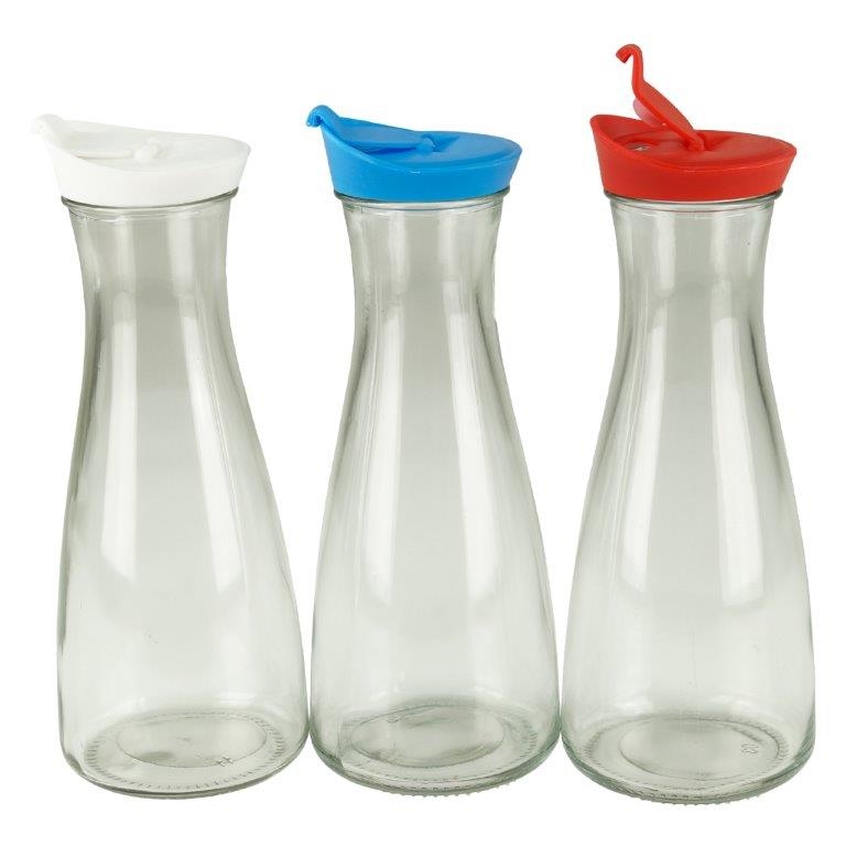 GVK ECO Glaskaraffe mit Deckel 1 Liter 3 Stück Weiß/Blau/Rot