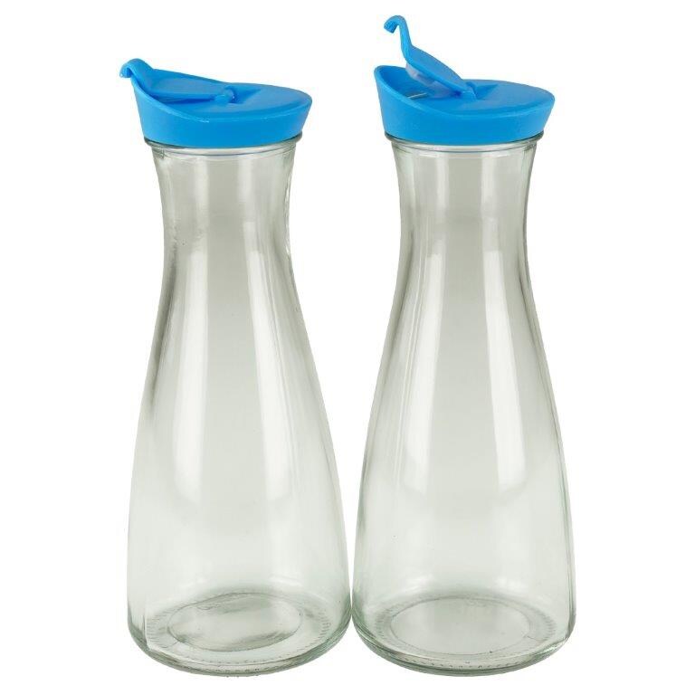 Glaskaraffe mit Deckel 1 Liter 2 Stück Blau/Blau