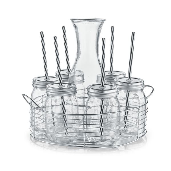 neuetischkultur Glaskaraffe-/ Gläser-Set, 8-tlg., Glas/Metall