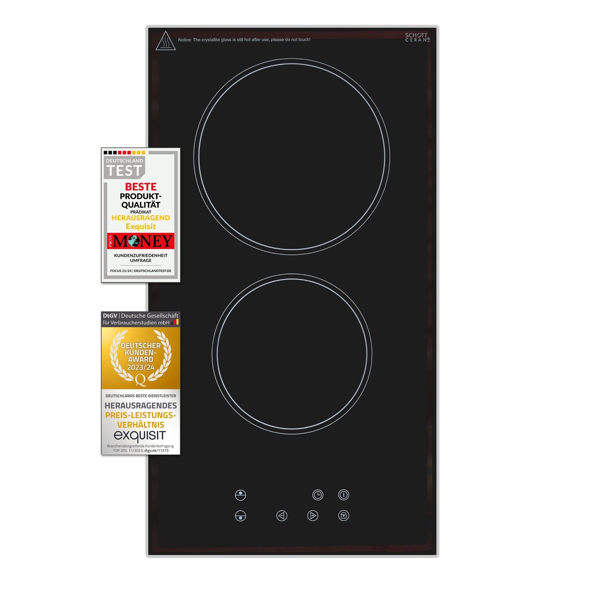 Exquisit Kochfeld EKC301-R-020 | Glaskeramik | Touch Control | Timer | Kindersicherung | Rahmenlos | 2 Kochstellen | 3000 W