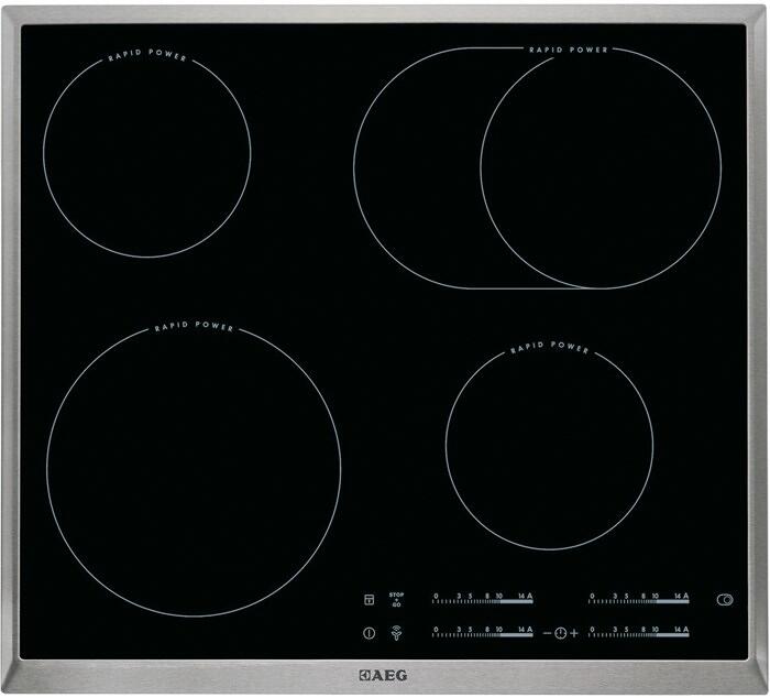 AEG HK654850XB Autarkes Elektro-Kochfeld, Glaskeramik, 60 cm breit, Sensor-Tasten, Edelstahl-Rahmen