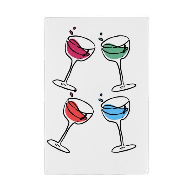 Metall Poster "Spritz cocktail flat blue" artboxONE - Essen & Trinken,Essen & Trinken / Alkohol - Cocktail,Flat,Drink,Beverage,Alcohol,Glass,Vintage
