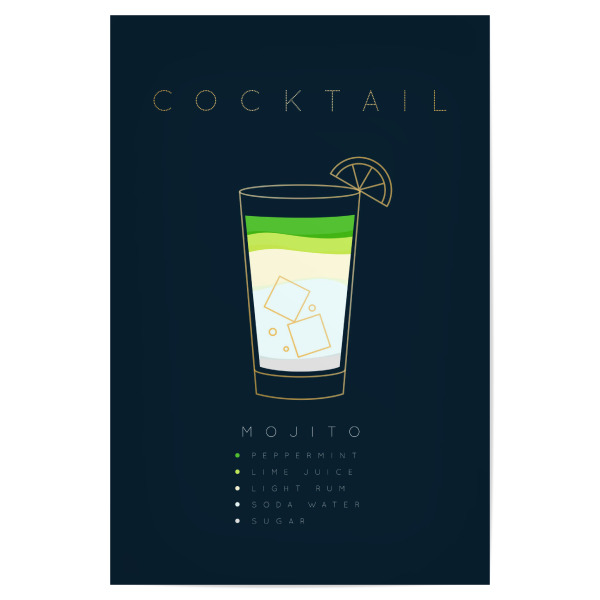 Poster "Mojito cocktail flat blue" artboxONE - Essen & Trinken,Essen & Trinken / Alkohol - Cocktail,Flat,Drink,Beverage,Alcohol,Glass,Vintage,Mojito