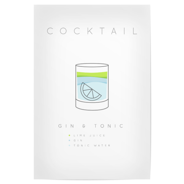 Poster "Gin Tonic cocktail flat" artboxONE - Essen & Trinken,Essen & Trinken / Alkohol - Cocktail,Flat,Drink,Beverage,Alcohol,Glass,Vintage,Gin,Tonic