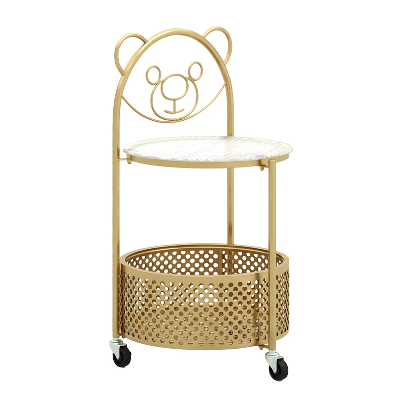 COSTWAY Beistelltisch aus Glas mit Rollen, 2-stöckiger runder Glastisch mit Bärenmotiv, 40 x 36,5 x 71 cm (Gold)