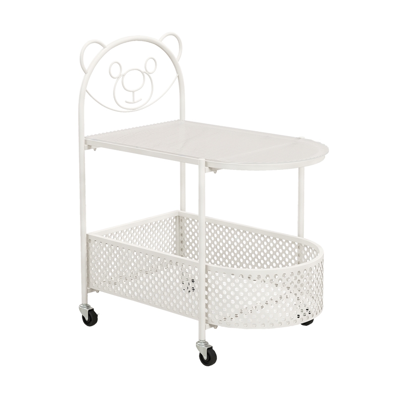COSTWAY Beistelltisch aus Glas mit Rollen, 2-stöckiger Glastisch mit Bärenmotiv, 60 x 40 x 76 cm (weiß)