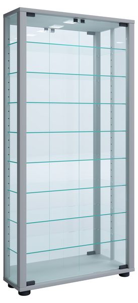 Glasvitrine „1000” silber | ohne Unterschrank | 2 Schienen mit je 5 LED Spots 2700 K