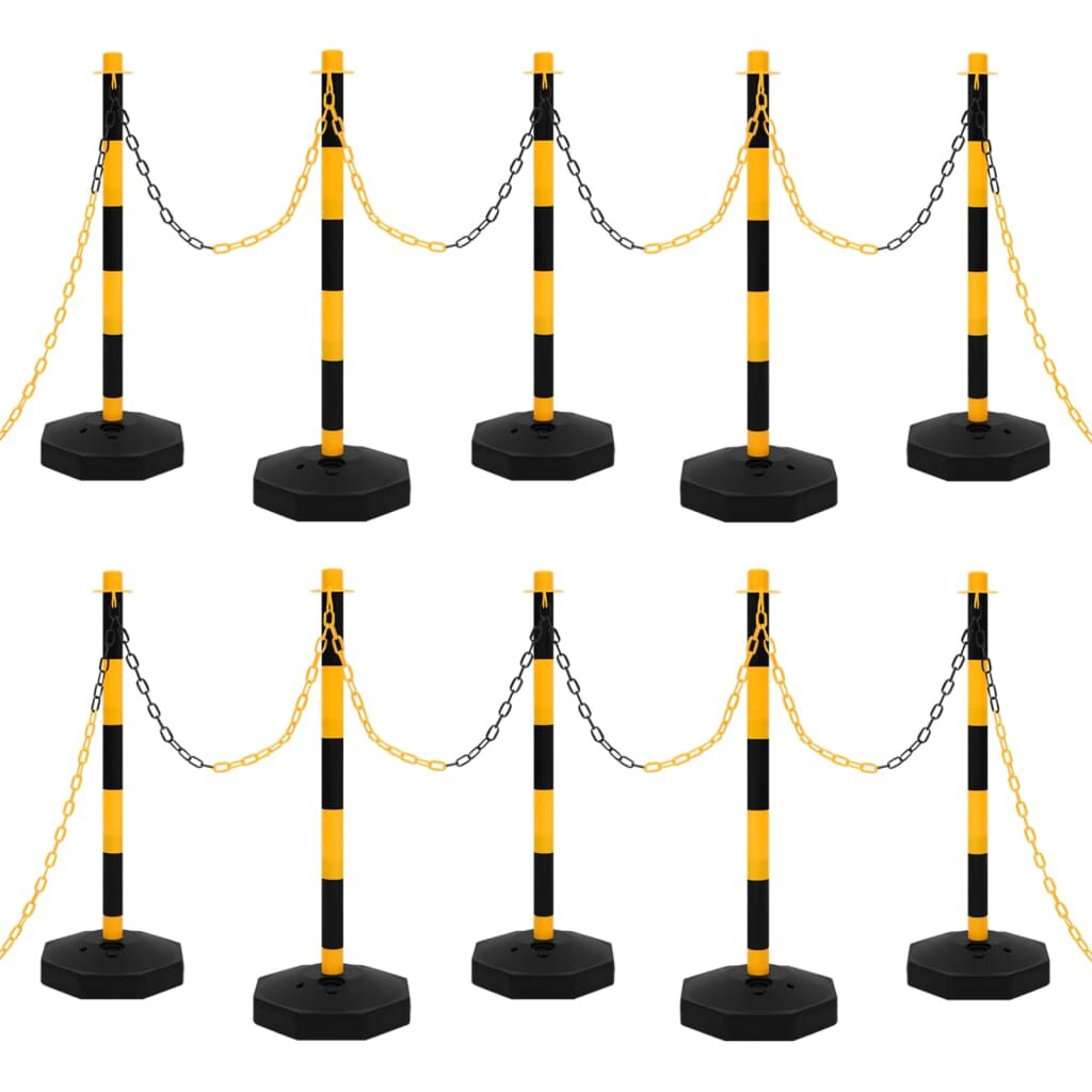 DELUKE Kettenpfosten SEGO 10er Set mit 10 m Kunststoffkette Gelb | Kettenständer mit Warnkette Gliederkette Sicherheitskette zum Absperren