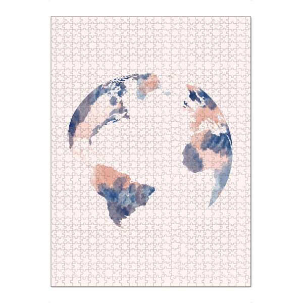 Puzzle Ravensburger "Globe, World map pink and navy" artboxONE - Kartografie - Watercolor map,Blush rose,Navy blue,World map,Weltkarte,Globe