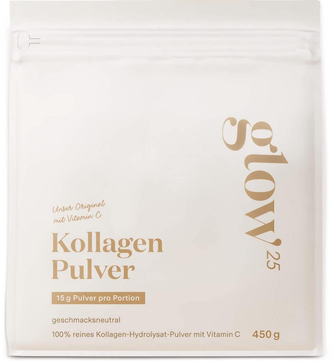 Glow25 Kollagen Pulver mit Vitamin C, 450 g Beutel, Geschmacksneutral