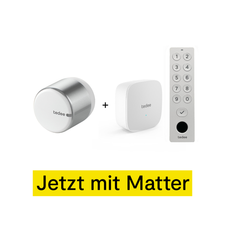 tedee Starter Set - mit Bridge, Lock GO 2 Türschloss - Aluminium + Keypad Pro