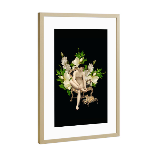 Poster mit Rahmen Gold "Venus in Chair with Flowers" artboxONE - Natur,Menschen