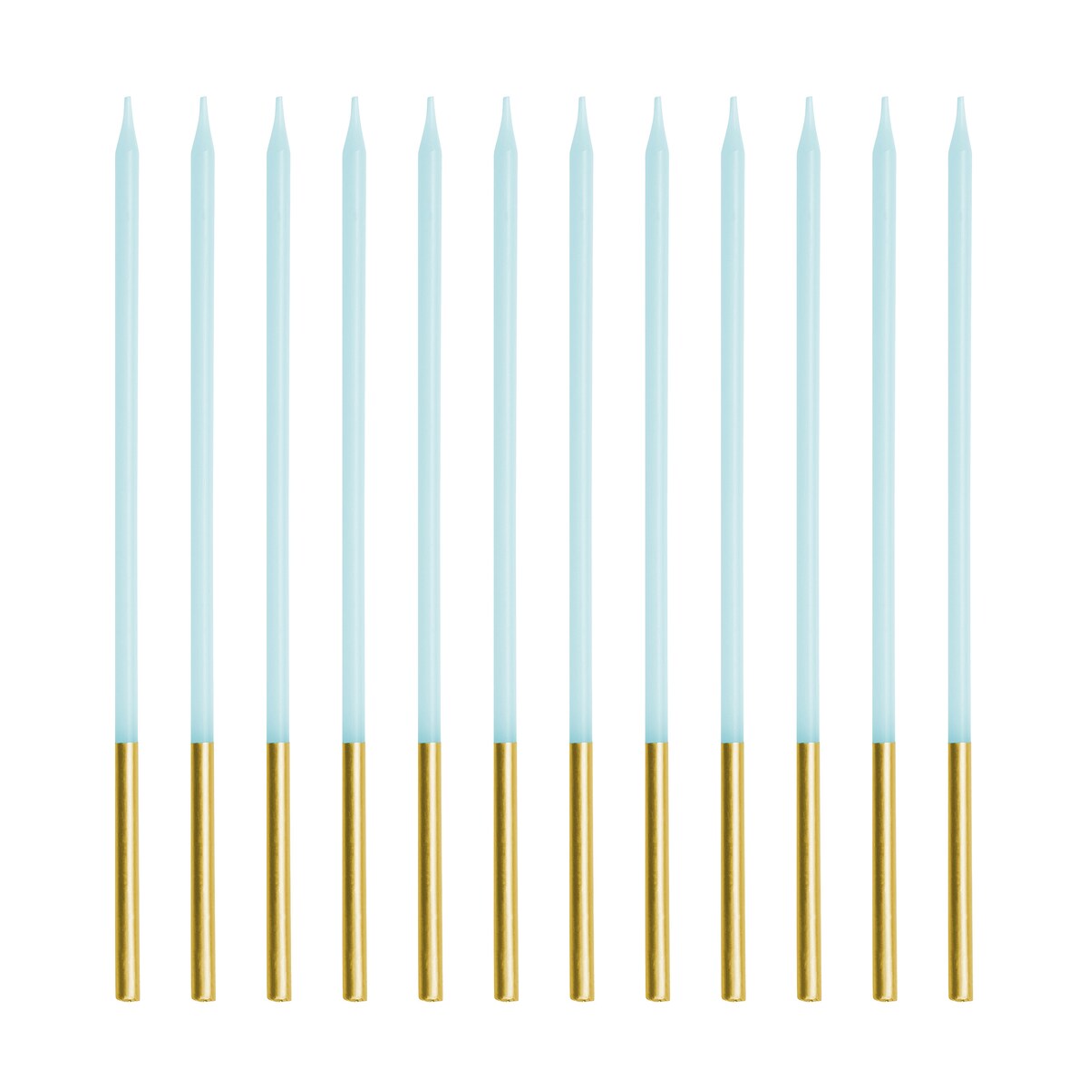 PartyDeco Geburtstagskerzen 14cm glatt 12er Set Kuchenkerzen Geburtstag Kerzen Torte Geburtstagskuchen Tortenkerzen Blau Gold