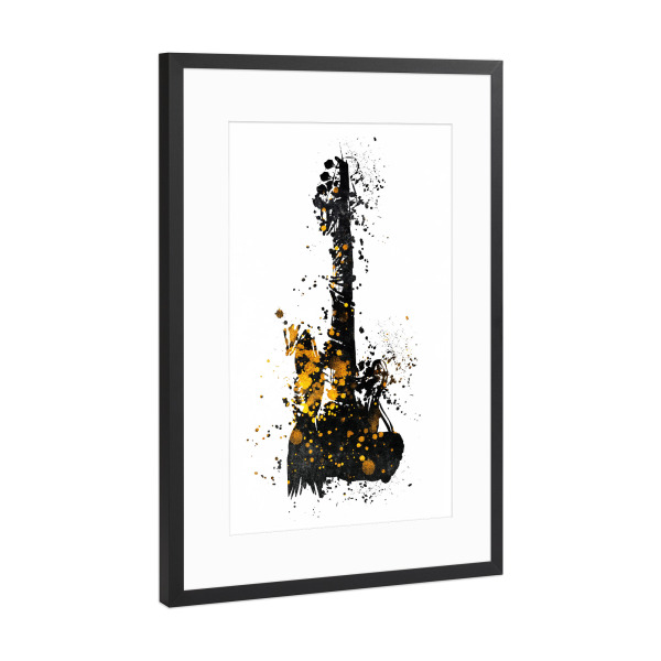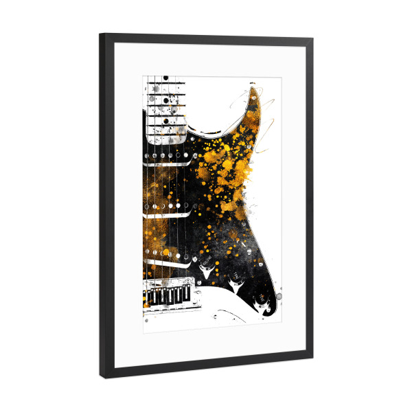 Poster mit Rahmen Schwarz (Metallic) "Guitar gold and black arts" artboxONE - Musik