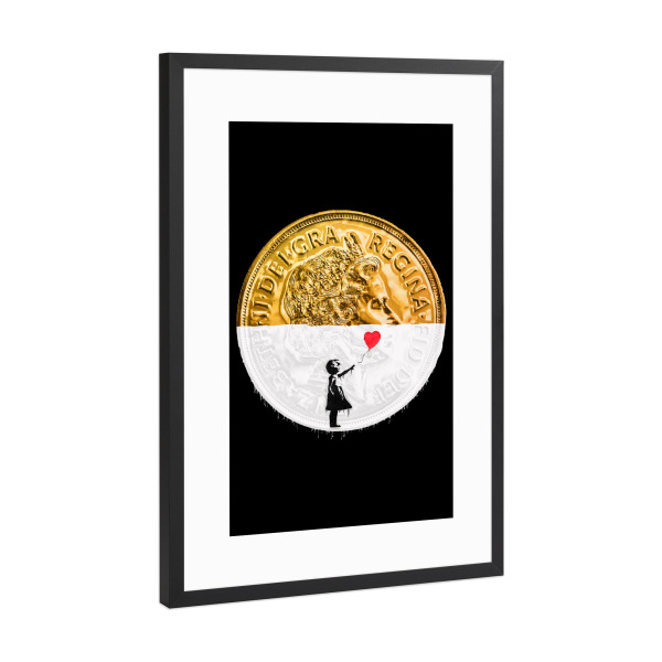 Poster mit Rahmen Schwarz (Metallic) "Street Art Money" artboxONE - Streetart - Money,Gold,Golden,Graffiti,Girl,Mädchen,Collage