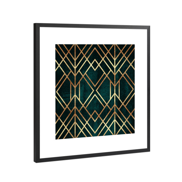 Poster mit Rahmen Schwarz (Metallic) "Dark Teal Geo" artboxONE - Abstrakt,Geometrie - Graphic,Abstract,Geometry,Geometric,Teal,Gold,Geo,Art deco