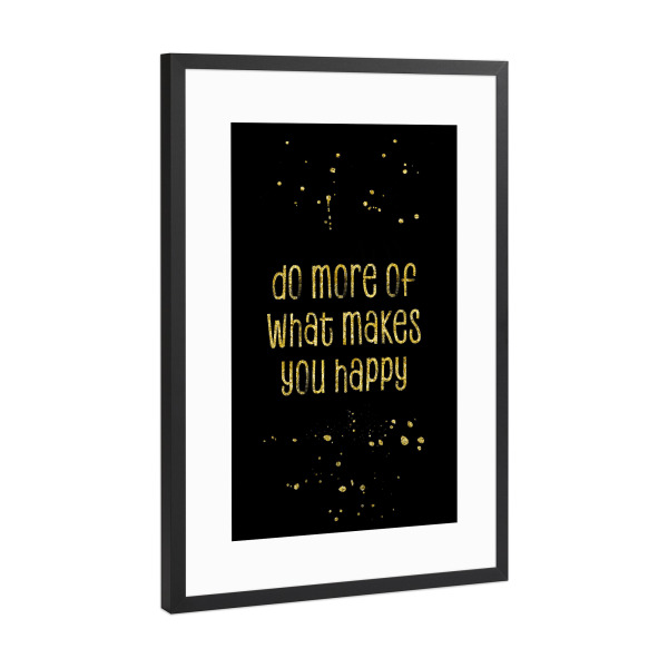 Poster mit Rahmen Schwarz (Metallic) "GOLD Art Happy" artboxONE - Typografie
