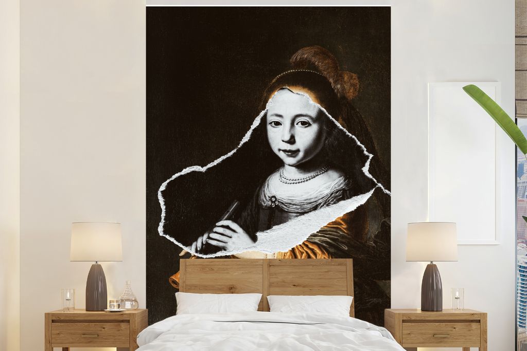 MuchoWow Fototapete für Wohnzimmer oder Schlafzimmer Wandtapete Vinyl Motivtapete Elizabeth Mirror - Schwarz - Weiß - Gold - 160x240 cm - Vinyl...
