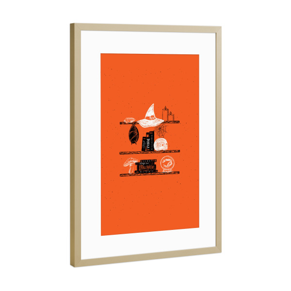 Poster mit Rahmen Gold "Halloween shelf orange" artboxONE - Essen & Trinken / Alkohol