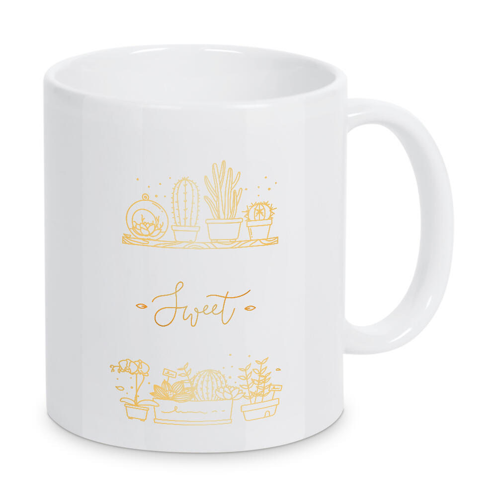 Tasse "Shelf with flowers sweet home gold" artboxONE - Natur,Schwarzweiß