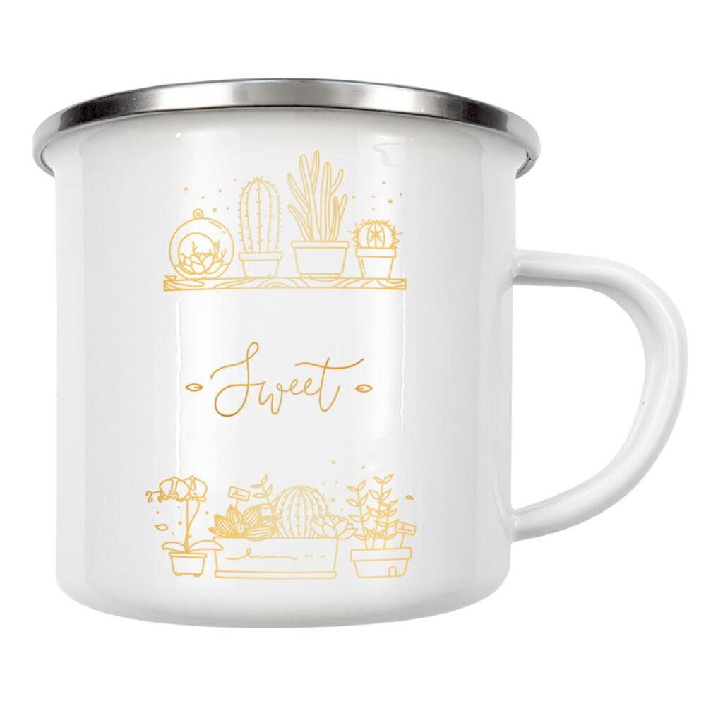 Emaille Tasse "Shelf with flowers sweet home gold" artboxONE - Natur,Schwarzweiß