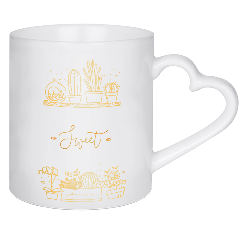 Herztasse "Shelf with flowers sweet home gold" artboxONE - Natur,Schwarzweiß
