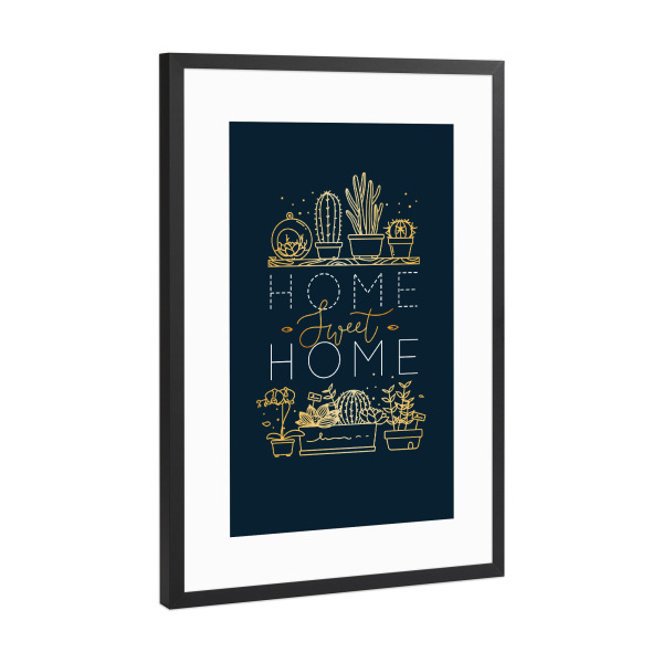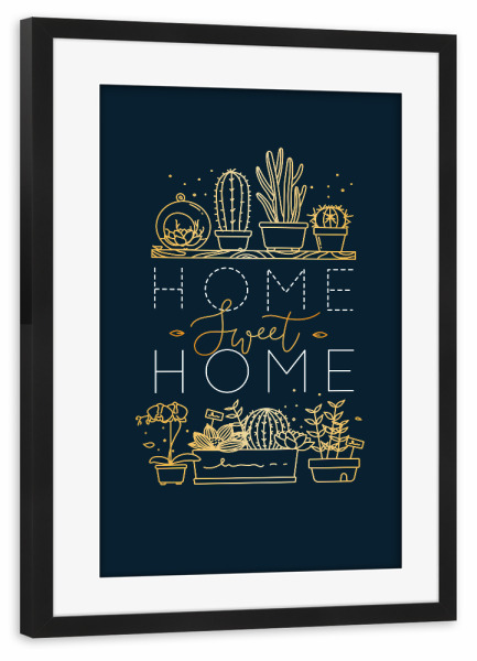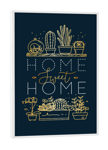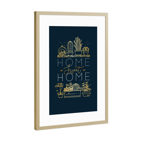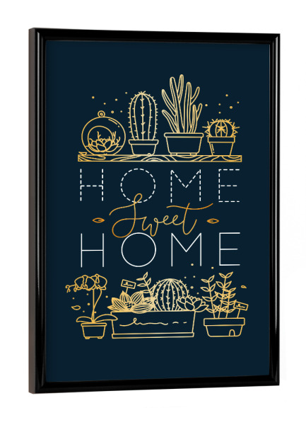 Poster mit Rahmen Schwarz (Metallic) "Shelf with flowers sweet home gold" artboxONE - Natur,Schwarzweiß