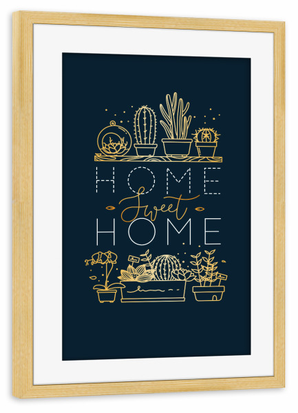 Poster mit Rahmen kiefer "Shelf with flowers sweet home gold" artboxONE - Natur,Schwarzweiß