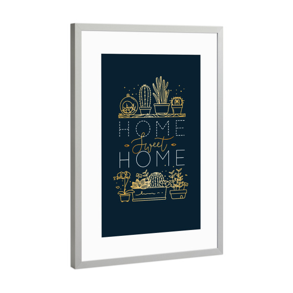 Poster mit Rahmen Silber "Shelf with flowers sweet home gold" artboxONE - Natur,Schwarzweiß