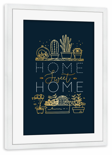 Poster mit Rahmen weiß "Shelf with flowers sweet home gold" artboxONE - Natur,Schwarzweiß