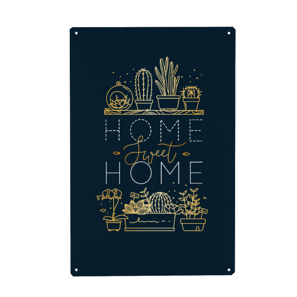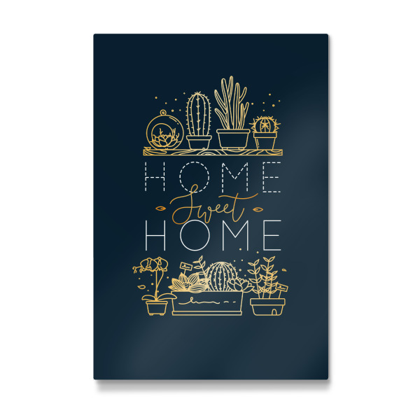 Metall Poster "Shelf with flowers sweet home gold" artboxONE - Natur,Schwarzweiß