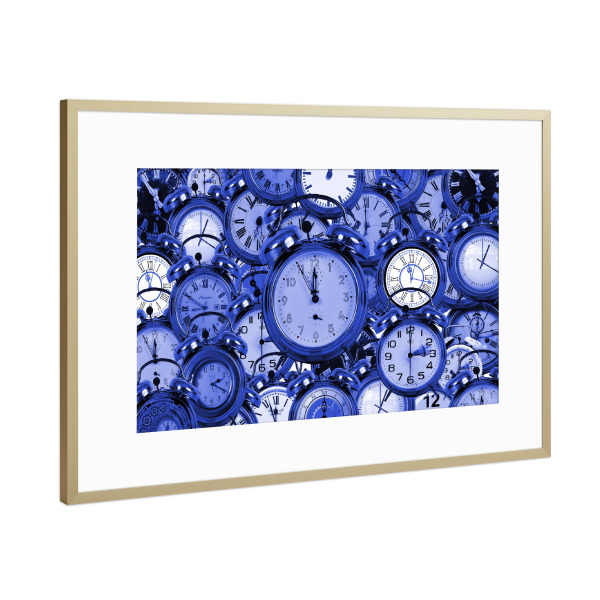 Poster mit Rahmen Gold "Uhrzeit blau" artboxONE - Abstrakt - Uhrzeit,Uhr,Zeit,Time,Clock