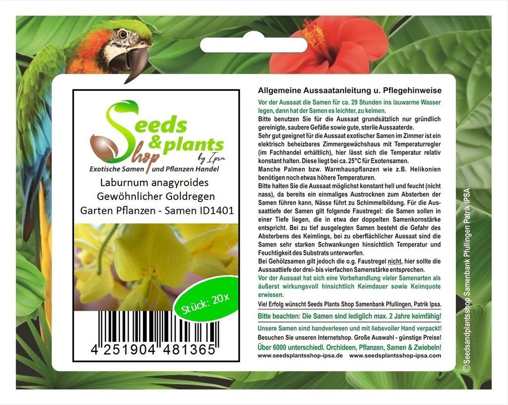 20x Laburnum anagyroides Gewöhnlicher Goldregen Garten Pflanzen - Samen ID1401