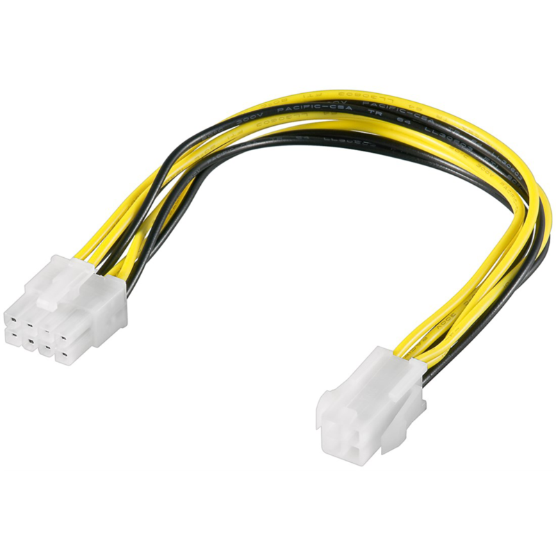 goobay Internes Stromkabel ATX 8p auf 4p Adapter, schwarz/gelb, 24cm