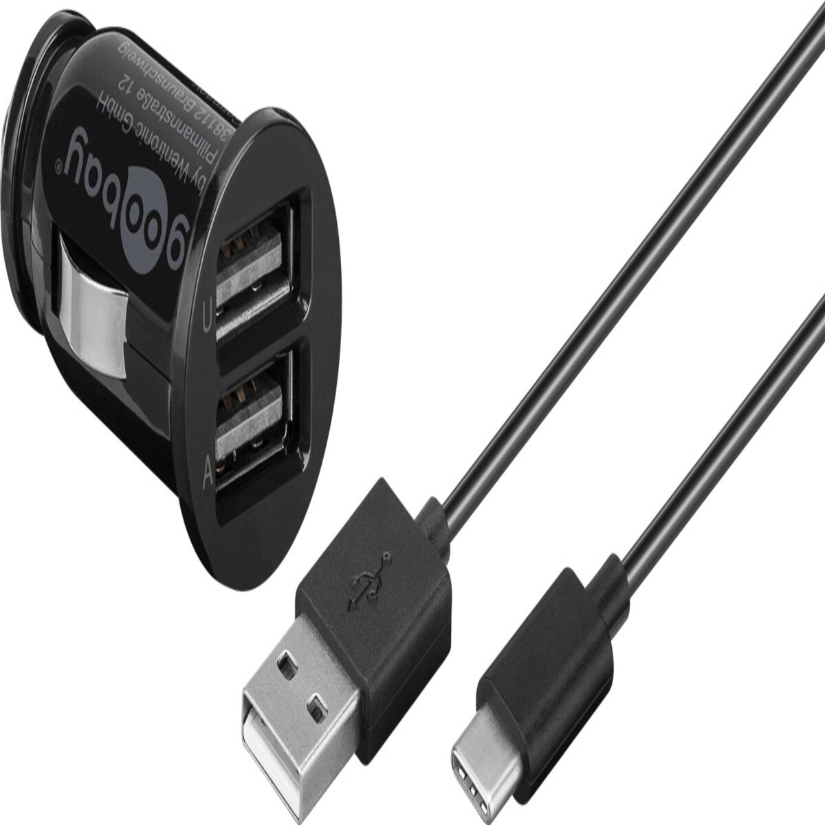 Goobay 58820 USB Type-C Auto-Ladeset 2,1 A, Schwarz, 1 m - Kfz-Ladeadapter mit 2 USB Ports und USB Type-C Kabel