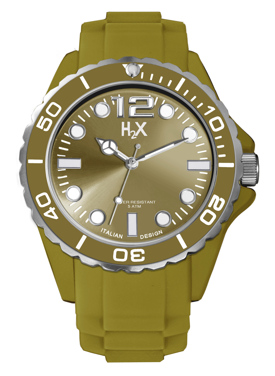 H2x Herren sv382uv3 Reef Leuchtende Wasserfeste Khaki-Grüne Weiche Gummi-Uhr