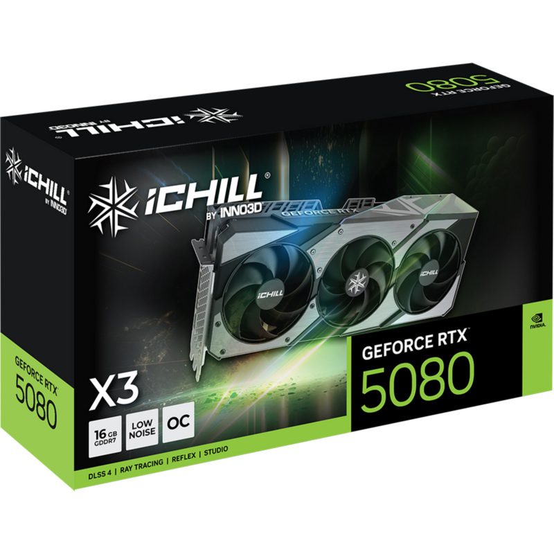 INNO3D GeForce RTX 5080 ICHILL X3 V2 Grafikkarte, DLSS 4, 3x DisplayPort, 1x