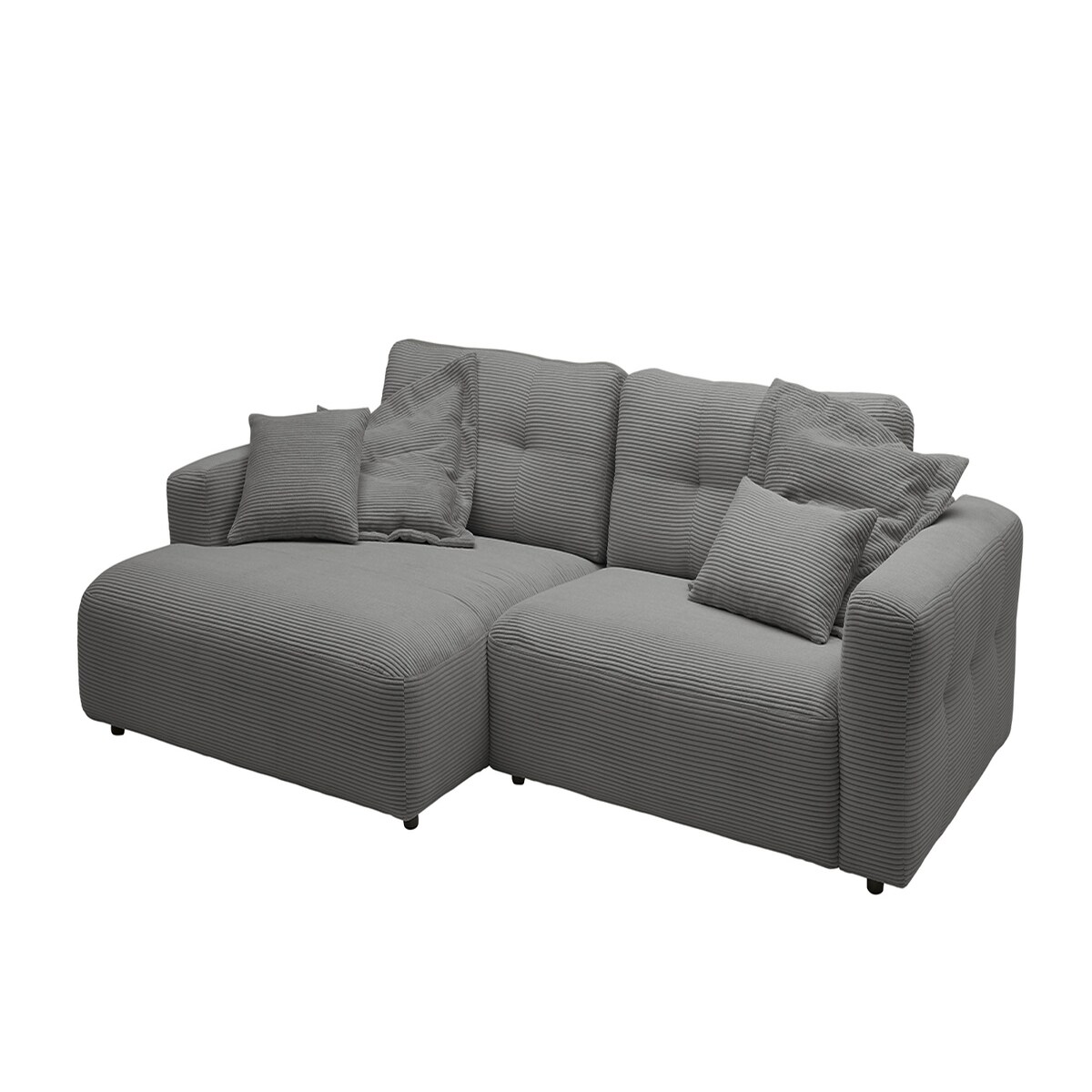 L-Form Ecksofa mit Wellenfedern Prince L L-Shape Corner Sofa aus Cord-Bezug l-förmiges Polsterecke für Wohnzimmer, Farbe: Grau, Ottomane: links