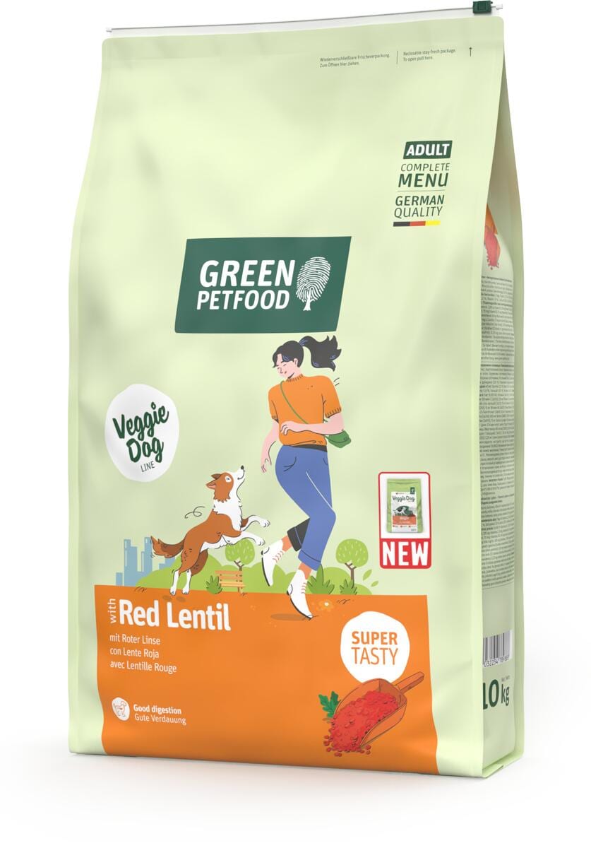 Green Petfood VeggieDog Trockenfutter mit roten Linsen, 10kg