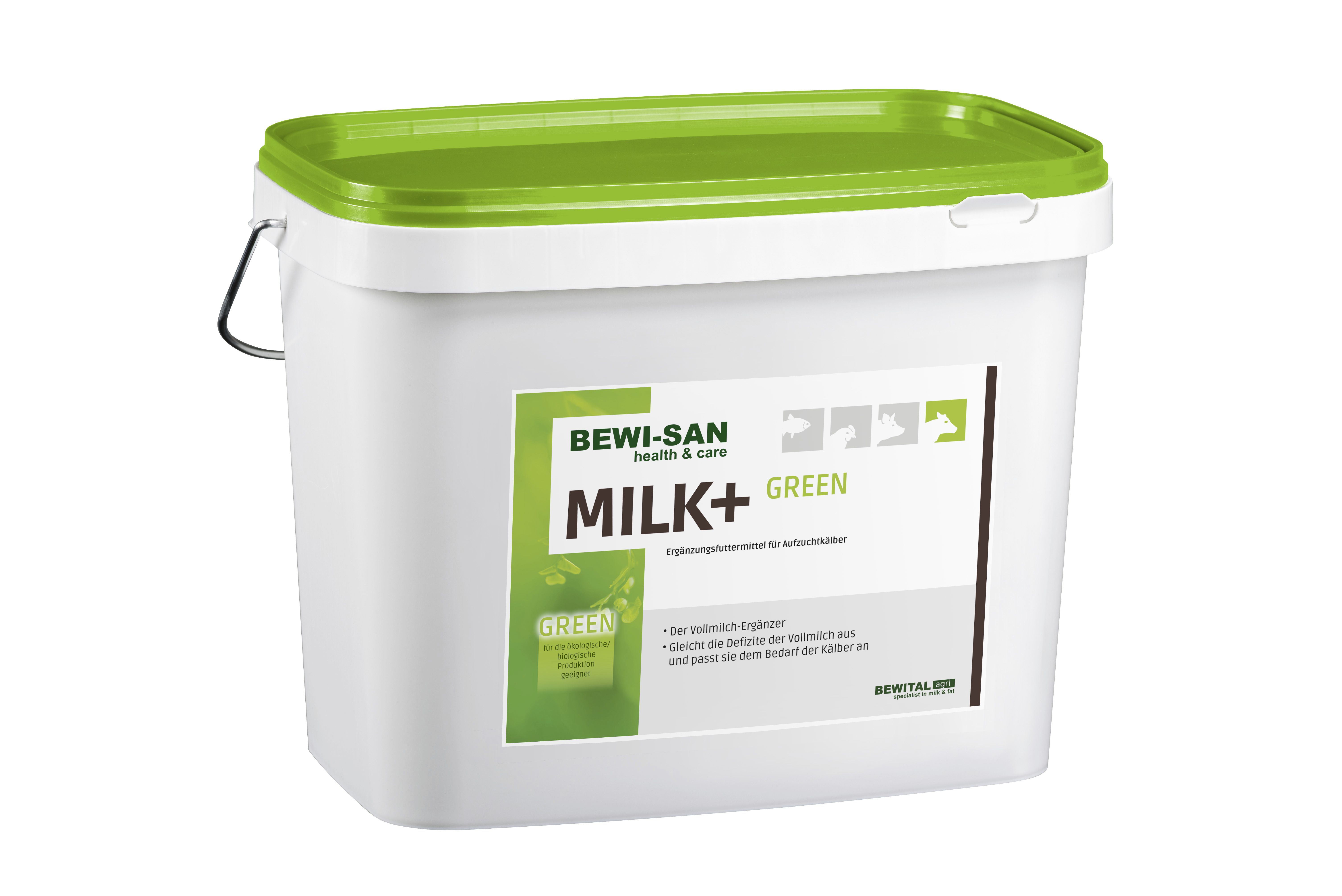 BEWI-SAN Milk+ Green für Ökobetriebe geeigneter leicht angesäuerter Vollmilch-Ergänzer bei Kälberaufzucht mit Vollmilch Pulver 10 kg Eimer