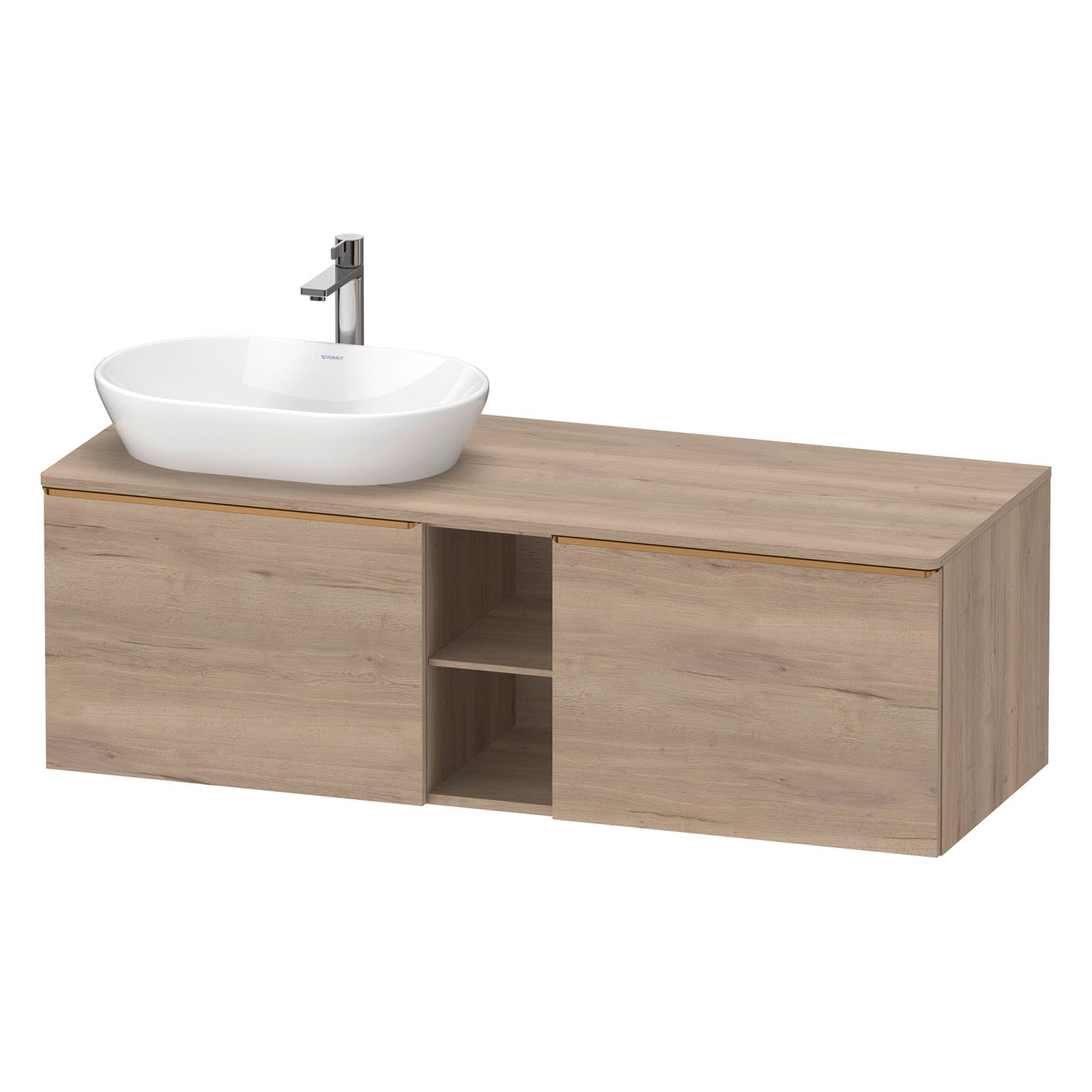 Duravit D-Neo Konsolenwaschtischunterbau für Waschtisch links 140 x 45,9 cm, 2 Auszüge, Griff gold poliert, Badmöbel,