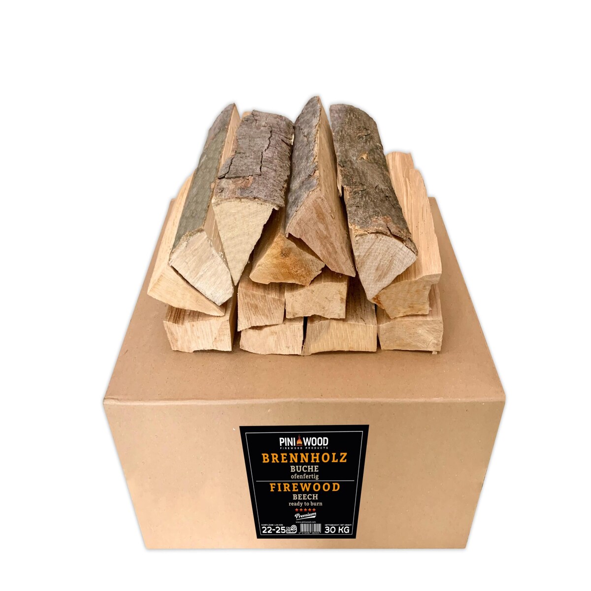 PINI Brennholz ofenfertig Buche 20 Kg ca. 25 cm für Kamin Grill Feuerschale PizzaofenSmoker