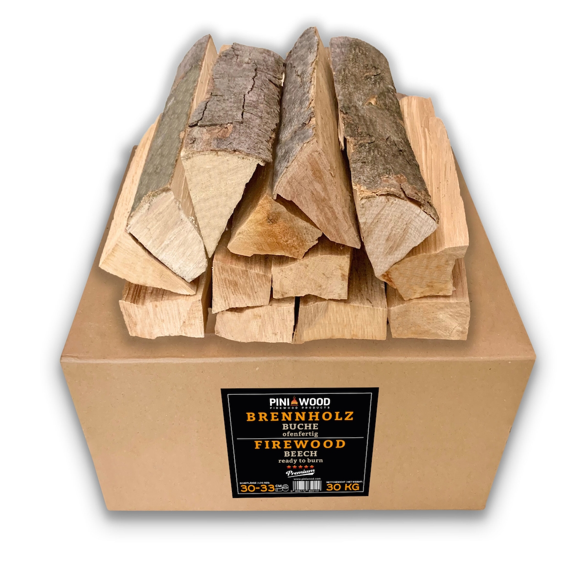 PINI Brennholz ofenfertig Buche 30 Kg ca. 30-33 cm für Kamin Grill Feuerschale Pizzaofen Smoker
