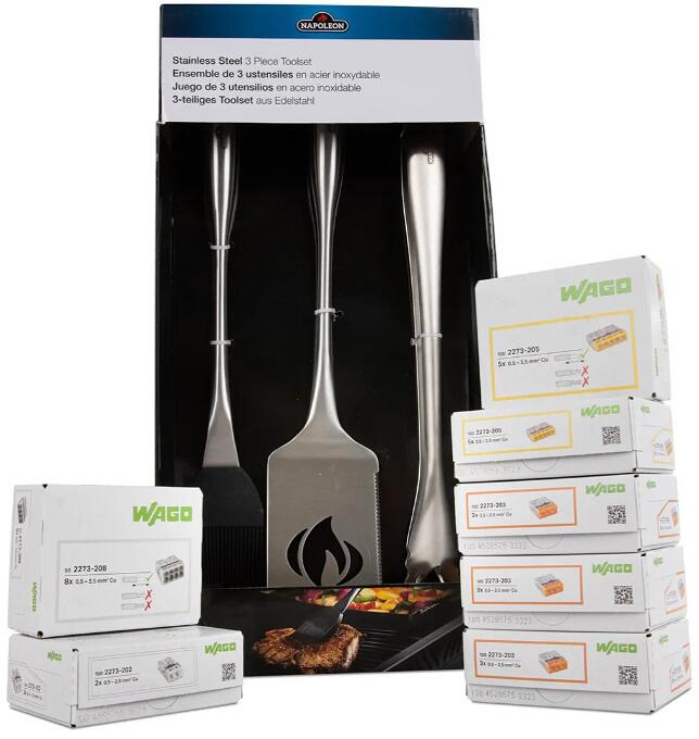 Wago PROFI-SET mit NAPOLEON Grillbesteck-Set und Steckklemmen, mehrfarbig (887-446)