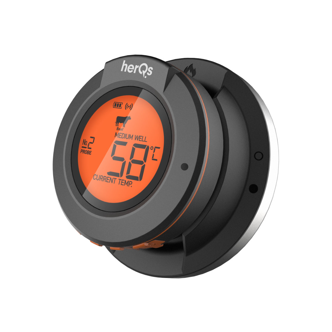 HerQs Dome - Grillthermometer - Bluetooth Fleischthermometer - incl. 2 sondes - Digitales Thermometer - Mit App und Temperaturalarm - bis zu 4 Sond...